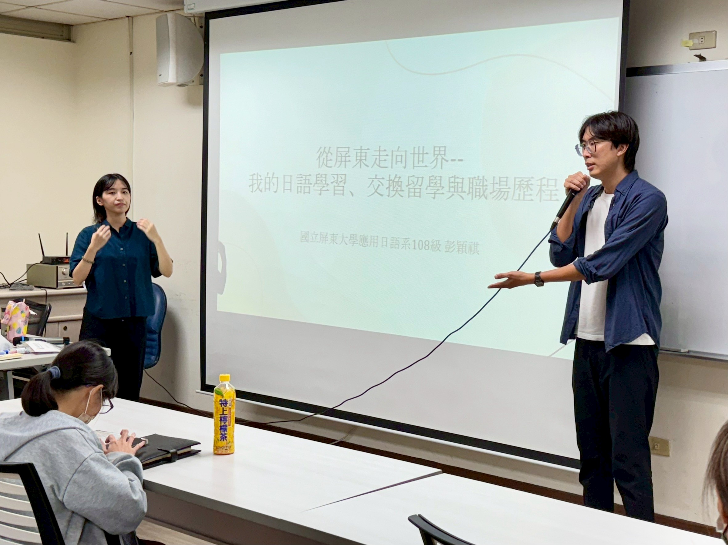 | 台灣住友商事業務助理 彭穎祺系友進行演講 |